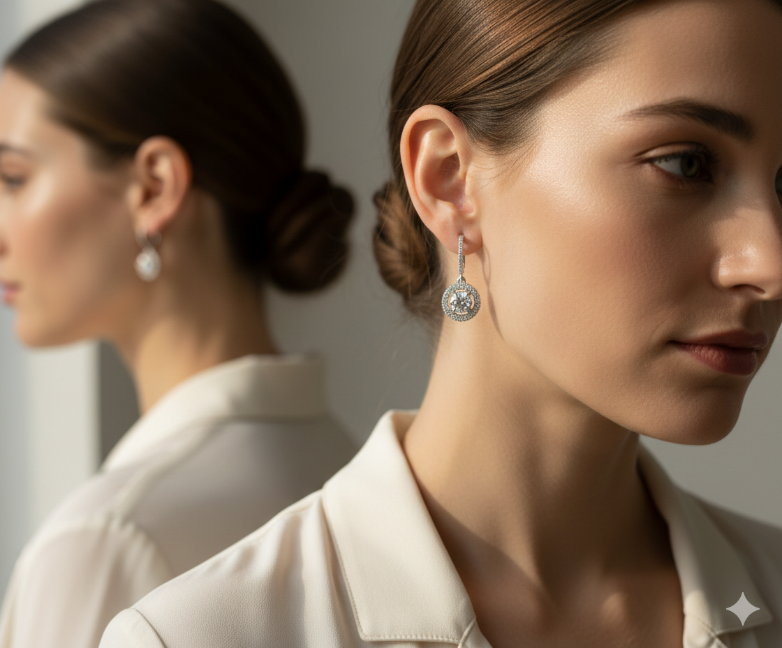 Designed to capture and dance with the light, the drop style adds a graceful movement that frames the face with effortless elegance. Whether paired with a professional silk blouse for the office or a classic evening gown, these earrings offer a refined sparkle that never goes out of style.