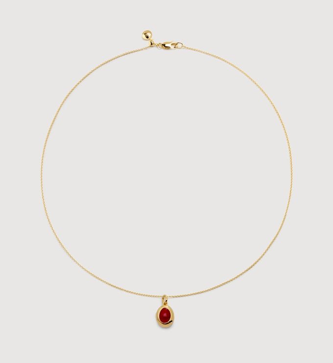 Choose your birthstone, add a free engraving, layer it your way. Crafted in 100% recycled gold vermeil and natural red onyx.